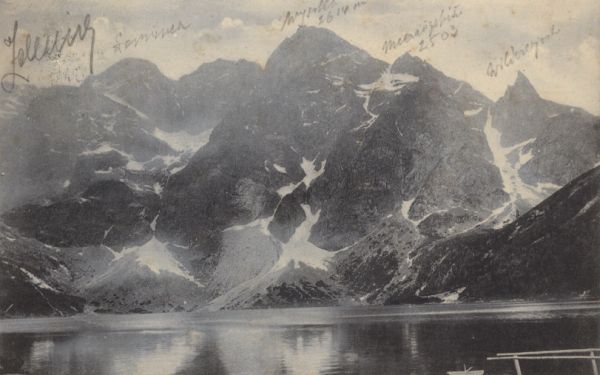Pocztówka użyta w obiegu pocztowym, korespondencja. Dodatkowy stempel: "MORSKIE OKO 26.VII.1907"