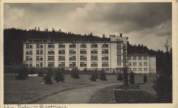 Kvetnica - obecnie dzielnica Popradu. Widok na budynek w otoczeniu lasu.