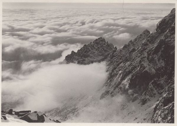 WYSOKIE TATRY. WIDOK Z DOLINY PIĘCIU STAWÓW SPISKICH NA MORZE MGIEŁ NAD SPISZEM.