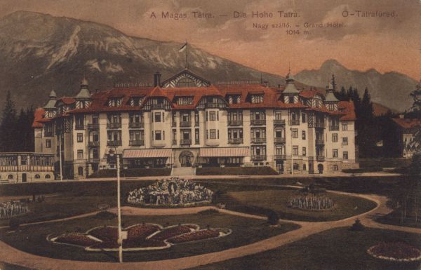 Grand Hotel w Starym Smokowcu. U góry wydrukowany tytuł, również w języku niemieckim.