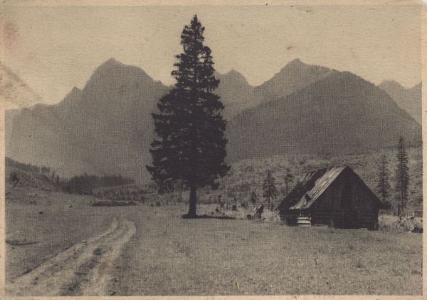 Szałasy na polanie w Dolinie Białej Wody. W tle Młynarz.