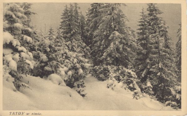 Las tatrzański w zimowej scenerii. Pod zdjęciem drukowany tytuł.