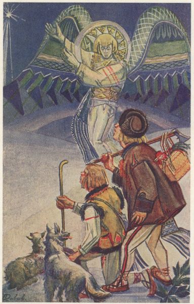Reprodukcja grafiki F. Robaka z okazji Świąt Bożego Narodzenia.