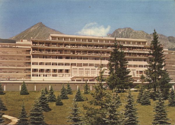 Na zdjęciu jeden z budynków sanatorium przeciwgruźliczego w Wyżnich Hagach i jego otoczenie. W tle wierzchołki Kończystej i Gerlacha.