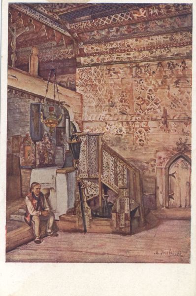 Reprodukcja obrazu Mariana Trzebińskiego pt. Dębno. Starogóralska polochromja kościoła.
