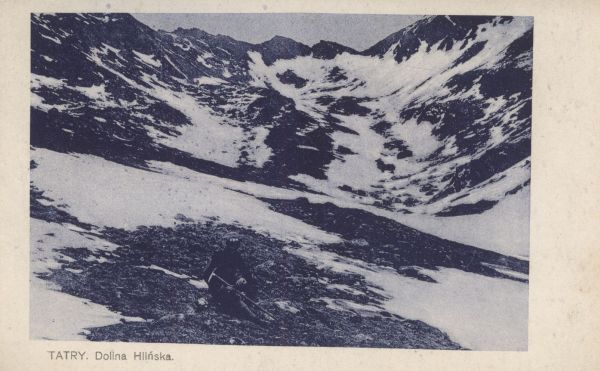 Turysta odpoczywający w Dolinie Hlińskiej. Pod zdjęciem drukowany tytuł.