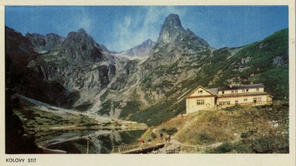 Schronisko nad Zielonym Stawem w Dolinie Kieżmarskiej. W tle Czarny Szczyt, Kołowy Szczyt i Jastrzębia Turnia.