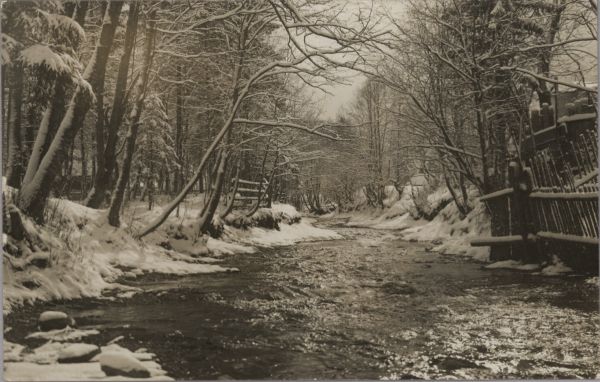 Potok Młyniska w Zakopanem zimą.