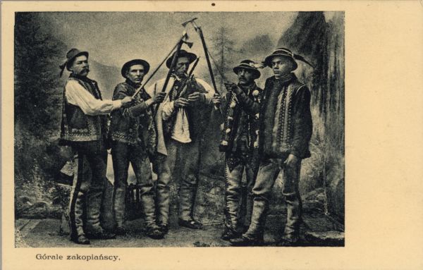 Portret górali zakopiańskich. Pod zdjęciem drukowany tytuł.