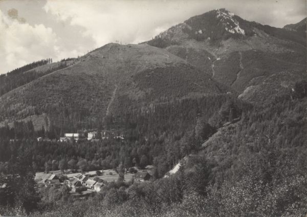 Widok na miejscowość Tatrzańska Kotlina. W tle Tatry Bielskie, widoczne: Kobyli Wierch i Fajksowa Czuba.