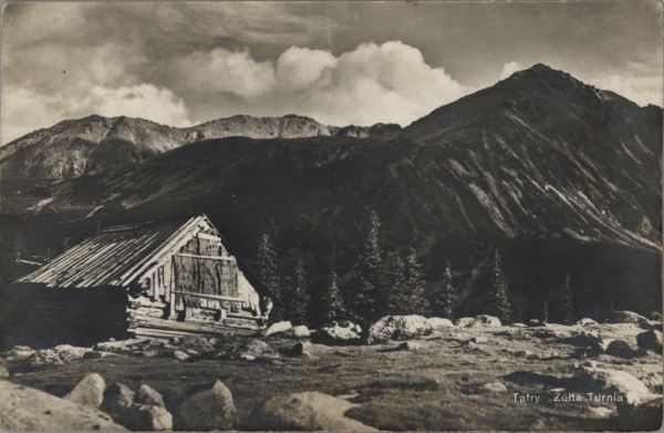 Szałas pasterski na Hali G±sienicowej. W tle Żółta Turnia.