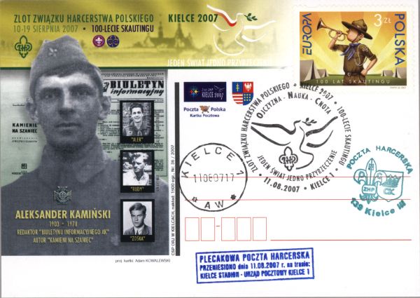 Karta okolicznościowa, Zlot Związku Harcerstwa Polskiego 10-19 sierpnia 2007. 100-lecie skautingu. Aleksander Kamiński.