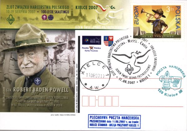 Karta okolicznościowa, Zlot Związku Harcerstwa Polskiego 10-19 sierpnia 2007. 100-lecie skautingu. Gen. Robert Baden - Powell.
