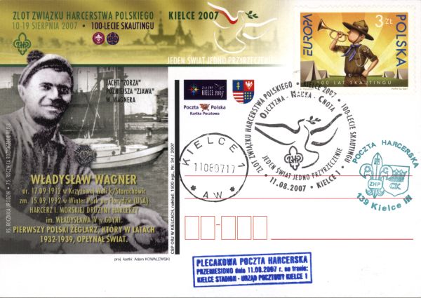Karta okolicznościowa, Zlot Związku Harcerstwa Polskiego 10-19 sierpnia 2007. 100-lecie skautingu. Władysław Wagner.