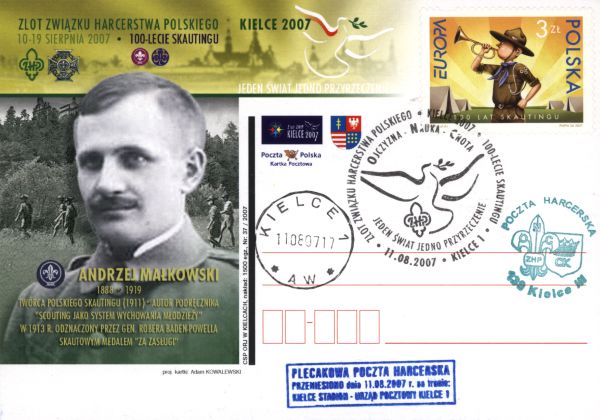 Karta okolicznościowa, Zlot Związku Harcerstwa Polskiego 10-19 sierpnia 2007. 100-lecie skautingu. Andrzej Małkowski.