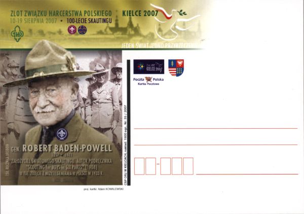 Karta okolicznościowa, Zlot Związku Harcerstwa Polskiego 10-19 sierpnia 2007. 100-lecie skautingu. Gen. Robert Baden - Powell.