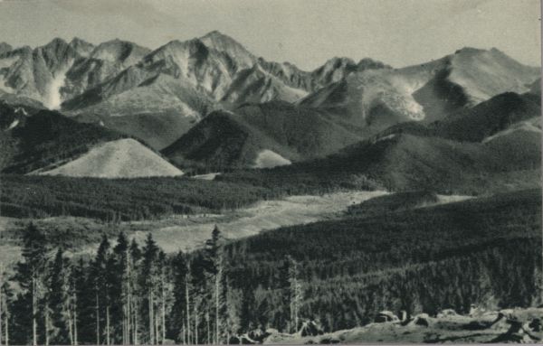 Panorama Tatr z Bukowiny Tatrzańskiej. Pośrodku Lodowy Szczyt.