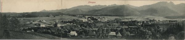 Widok ogólny na Zakopane z Gubałówki. U góry wydrukowany tytuł, z lewej strony nakładca.