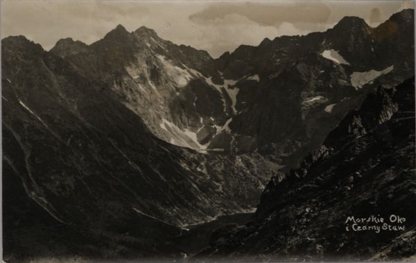 Pocztówka bez obiegu pocztowego, czysta. Dodatkowo pieczęć: "MORSKIE OKO W TATRACH 1400 m. SCHRONISKO POLSKIEGO TOWARZYSTWA TATRZAŃSKIEGO".