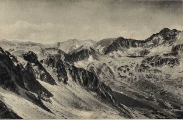 Widok z Miedzianego. W dole Czarny Staw Polski. Pośrodku Gładki Wierch, z prawej Świnica.