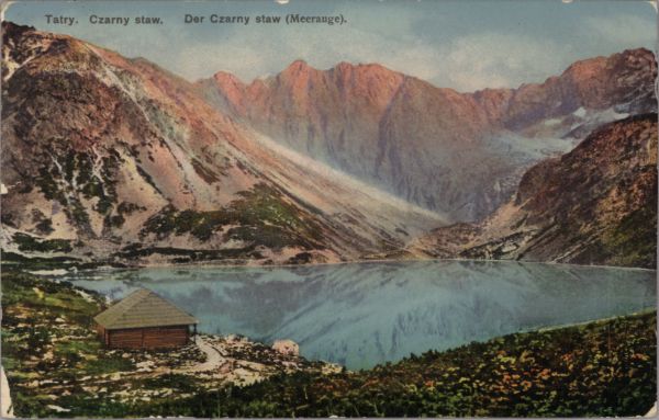 Schronisko nad Czarnym Stawem G±sienicowym. W tle Granaty. U góry wydrukowany tytuł, również w języku niemieckim.