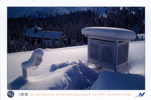 100 lat pomiarów meteorologicznych na Hali G±sienicowej. Stacja Badań Niwalnych Hala G±sienicowa - Klatka meteorologiczna w zimie.