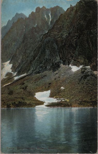 Batyżowiecki Staw. W tle Gerlach. Na dole drukowany tytuł.