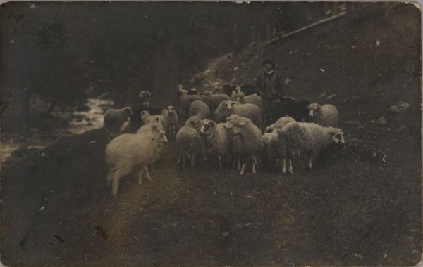 Juhas z owcami w dolinie.
