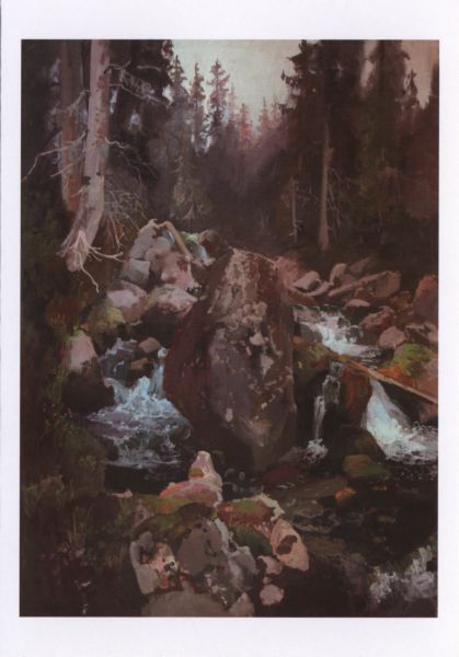 Reprodukcja obrazu Stanisława Gałka pt. Potok w Tatrach.
