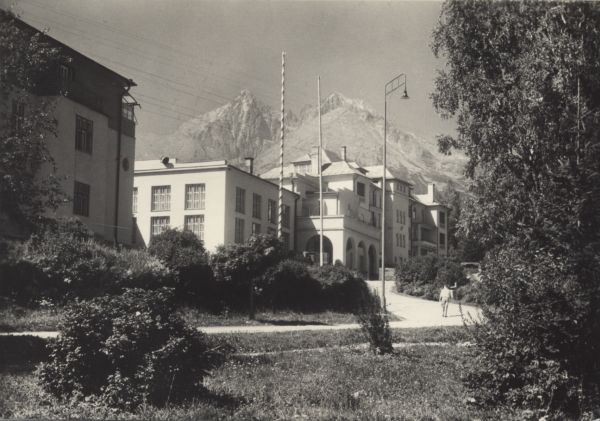 Tatry Wysokie - Tatrzańskie Matlary. Wojskowy zakład leczniczy. W tle Łomnica i Kieżmarski Szczyt.