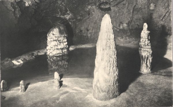 Stalagmity w Sali Palmowej w Jaskini Bielskiej.