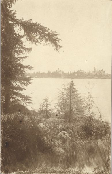 Widok na Szczyrbskie Jezioro. W tle zabudowania hotelowe w osadzie.