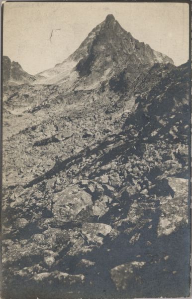 Pocztówka bez obiegu pocztowego, zapisana. Korespondencja w języku niemieckim i odręcznie wpisany tytuł: Tatra Spitze ... oraz data 17 Juli 1917.
