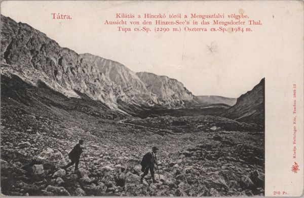 Tátra. Kilátás a Hinczkó tóról a Menguszfalvi völgybe. Tupa cs.-Sp., Oszterva cs.-Sp.
