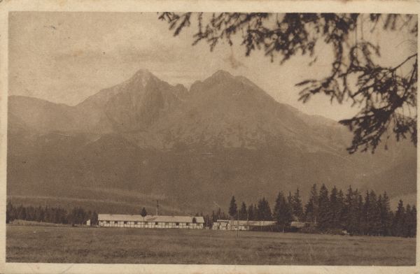 Tatry Wysokie. Czechosłowacki wojskowy zakład leczniczy w Matlarach, w tle Łomnica.