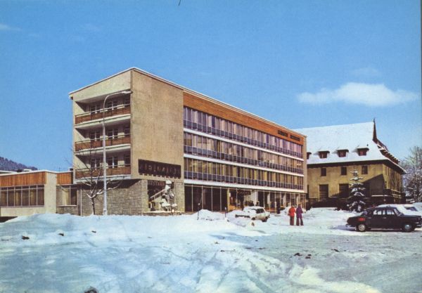 Widok na hotel Gazda od strony ulicy Zaruskiego. Zdjęcie wykonane zimą.