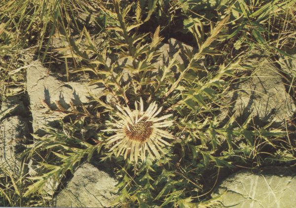 Kwitnący dziewięćsił bezłodygowy (Carlina acaulis).