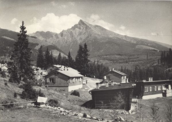VYSOKÉ TATRY. Podbanské (940 m) turistická základňa. V pozadí Kriváň (2494 m).