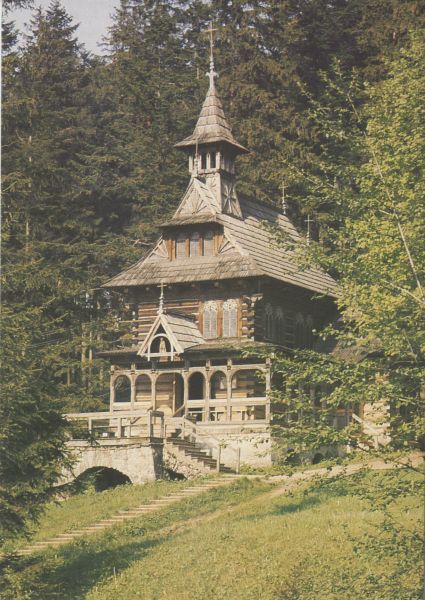 ZAKOPANE. Kapliczka w Jaszczurówce w stylu zakopiańskim (proj. Stanisław Witkiewicz).