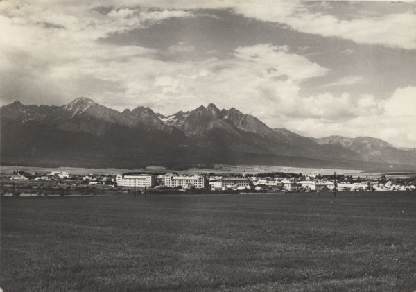 Widok na Poprad. W tle panorama Tatr Wysokich: Sławkowski Szczyt, Łomnica, Kieżmarski Szczyt.