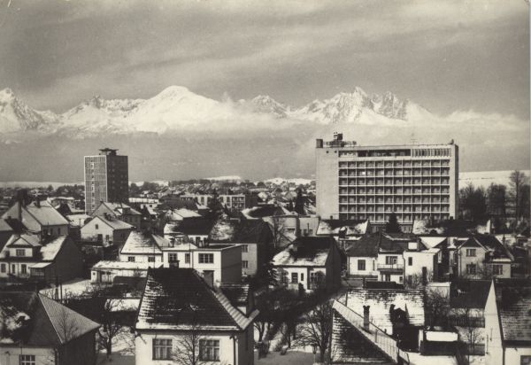 Poprad w zimie - w tle panorama Tatr Wysokich.