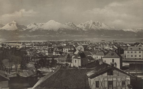 Poprad w zimowej scenerii. W tle Tatry Wysokie od Gerlachu po Łomnicę.