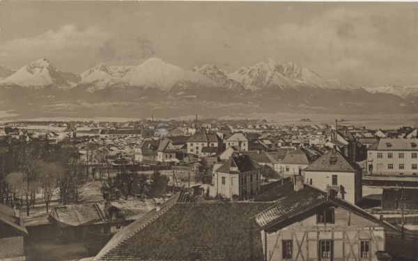 Poprad w zimowej scenerii. W tle Tatry Wysokie od Gerlachu po Łomnicę.