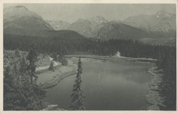 Nowe Szczyrbskie Jezioro. Widok z Hotelu Mori. W tle Wysoka.