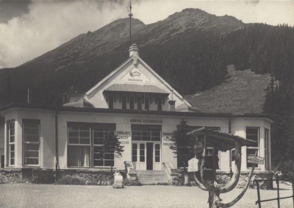Siodełko. Dom wypoczynkowy ROH - restauracja górska. W tle Sławkowski Szczyt.