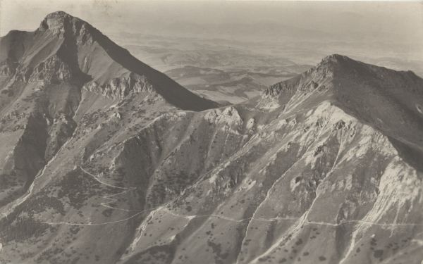 widok na Tatry Bielskie. Od lewej: Płaczliwa Skała, Szeroka Przełęcz Bielska, Szalony Wierch.
