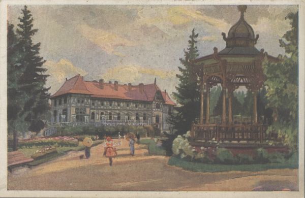 Hotel Łomnica w parku uzdrowiskowym - wg obrazu E. Kosy.