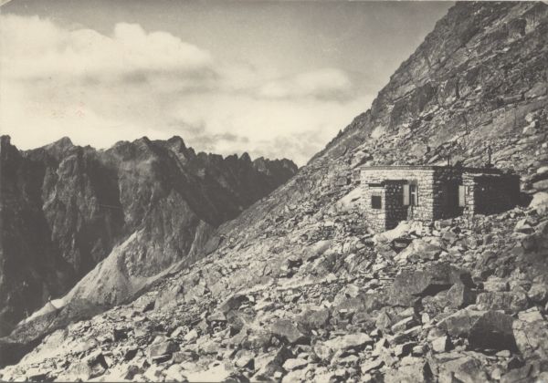 TATRANSKÝ NÁRODNÝ PARK. Útulňa pod Rysmi (2250 m). V popredí hrebeň Bášt nad Mengusovskou dolinou. V pozadí Kriváň (2494 m).