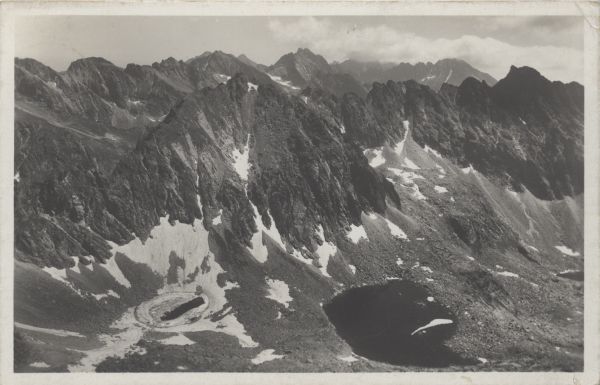 VYSOKÉ TATRY - Pohµad s Furkotského ątítu na Okrúhle a Capie pleso. V pozadí Menguąovské ątíty 2437 m Rysy 2503 m ©trbský ątít 2385 m Veµká Vysoká 2565 m Končistá 2540 m a Hlinská Veľa 2334 m