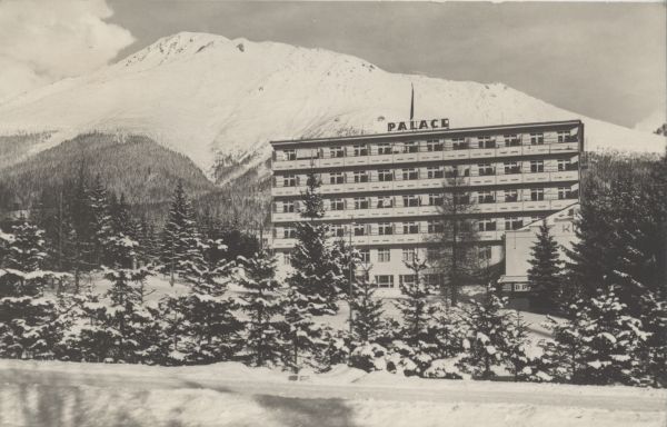 Nowy Smokowiec w zimowej scenerii. Sanatorium Palace. W tle Sławkowski Szczyt.